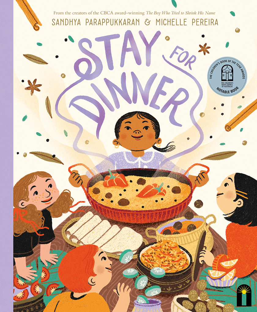 Stay for Dinner by Sandhya Parappukkaran, illus. Michelle Pereira (Hardie Grant Publishing, 2023)